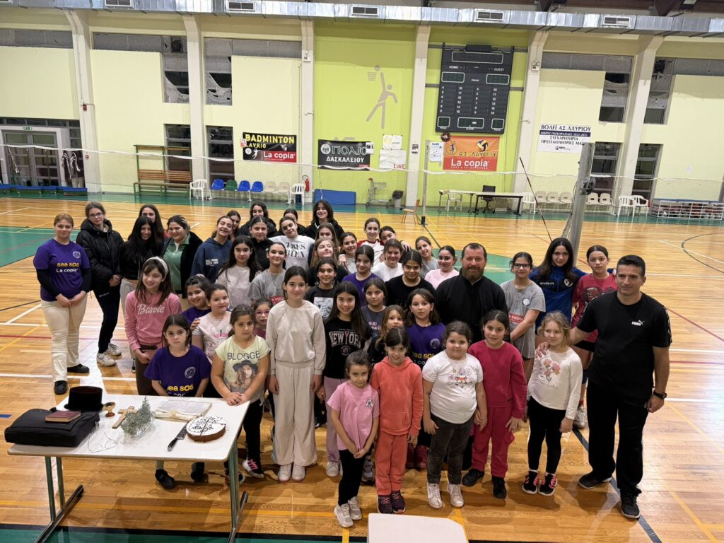 Την Παρασκευή 13 Φεβρουαρίου, ύστερα από πρόσκληση του καθηγητή Φυσικής Αγωγής κ. Κυριάκου Σταυριανού και παρουσία γονέων, ο Πανοσιολογιώτατος Αρχιμανδρίτης π. Κωνσταντίνος Συρίγος τέλεσε τον Αγιασμό και ευλόγησε τη Βασιλόπιτα της παιδικής ομάδας κοριτσιών βόλεϊ, στο κλειστό γυμναστήριο Νεαπόλεως Λαυρίου. Τα κορίτσια δέχθηκαν με χαρά την ευλογία του Αγιασμού και αντάλλαξαν ευχές. Ο π. Κωνσταντίνος ευχήθηκε στα παιδιά καλή πρόοδο στο σχολείο και επιτυχίες στους αγώνες της ομάδας. Ευχαρίστησε επίσης τον κ. Κυριάκο Σταυριανό για την ευγενική πρόσκληση, καθώς και τους γονείς, τους συντελεστές και τους χορηγούς της ομάδας. Στο τέλος πρόσφερε στα μέλη της ομάδας μια εικόνα της Παναγίας ως ευλογία και προστασία σε κάθε αγώνα της ζωής τους.